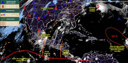 CLIMA 1 180921Tras la interacción de la la onda tropical Núm. 31 con un canal de baja presión extendido desde el noroeste hasta el centro del país