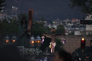 Con cuadras prácticamente a oscuras y otras más iluminadas por velas regaladas y compradas, eran miles los asistentes que esperaban el paso de las distintas imágenes religiosas que acompañaban al Santo Entierro y a la Virgen de la Soledad, a quien a cada se dio el pésame por parte de las autoridades eclesiásticas justo al llegar frente a Catedral, tras la muerte de su hijo Jesús.